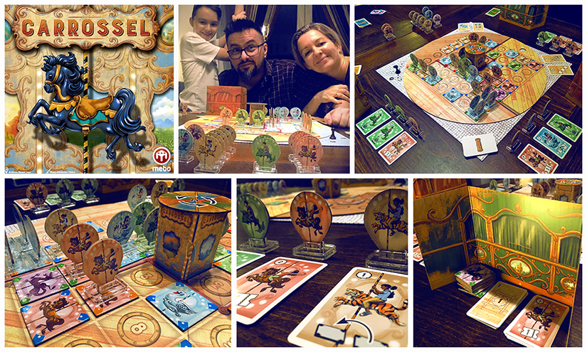 Természetesen a különleges tematika áll az első helyen, amit a grafika minden erejével megpróbál erősíteni, hangulatossá tenni. Emellett butaság lenne azt állítani, hogy valóban egy karusszel működését vagy működtetését imitálja a Carrossel. Meglehetősen absztrakt játék, amiben a játékelemek mégis benntartják a játékosokat a piactéri körhinták világában. Nagyon tetszik a játékban, hogy egyszerűen tanulható és könnyen működtethető, gyorsan pörgő, igazi családi játék, aminek azért bizony vannak mélységei is. Ezekkel a mélységekkel azonban ugyanúgy lehet küzdeni a végtelen számolgatással és analízis-paralízissel, mint a szerencsével is. Így aztán egyáltalán nem ritka nálunk, hogy minden okoskodásunk ellenére a mi Matyink viszi el a pálmát, azaz a legtöbb pontot. Szeretem azt is, hogy a játékvégi pontokat mindig segíti 4, a játék elején véletlenszerűen kiválasztott pontozó kártya is, ami olyan aspektusból vizsgálja meg a játék végállását, amilyenre a parti közben nemigen gondol senki.