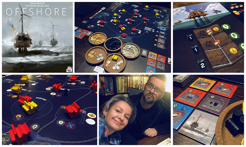 Ennek a kis sorozatnak az előző 10 részében igyekeztem bizonyítani, hogy nagyon sok kedves, és emellett remek játék létezik még az ismert kínálaton túl, ráadásul ezekért nem is kell sokat nyújtózkodni. De eddig viszonylag könnyű dolgom volt; túlnyomórészt már első látásra is könnyed témák, derűs látványvilág jellemezte ezeket a kiemelt játékokat. Azonban a soron következő darab elsőre nem tűnik ide valónak. Pedig de. És én nagyon kedvelem. Bevallom, elsőre engem is megtévesztett. Ugyan a (norvég) szerzőknek már olyan játékait is ismerjük, mint a nagyszerű Szüret (eredetileg: Avenue), a még nagyszerűbb Automania, a Santa Maria, a The Magnificent, vagy éppen a Mangrovia, és ezek között vannak könnyedebb játékok is, az Offshore nem ilyennek tűnt. A Norvégia partjain túli tengeri olajfúrótornyokra és magára az olajtermelésre tematizált játék csakis száraz és nehéz lehet. Ugye? És ha azt mondom, hogy tévedés? Csak remélem, hogy néhányan szánnak pár percet arra, hogy bebizonyíthassam.