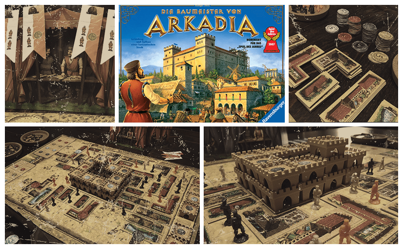 A magas interakcióval bíró, családi felső kategóriájú játékok között. Újoncoknak nem ajánlanám, de némi gyakorlattal már nem csak megérteni, de igazán élvezni is lehet az Arkadiát. Látszik rajta, hogy nem friss termék, de egyetlen része sem kifejezetten avítt (legfeljebb a kártyák hátlapját cserélném le sürgősen). A paravánok és polyomino épületek kifejezetten szépek (talán az utóbbiak, így maga a tábla is egy nagyobb méretfokozatért kiáltanak), és számomra még mindig nagyon látványos a kissé sokat használt műanyag bástyaelemekből épülő palotarendszer. Az apró munkások helyesek, a kártyák funkcionálisak, a pecsétek rendben vannak, és végül a pénzjelölők is, de nyilvánvalóan egy letűnt korszakot idéznek a hegyes, sarkos elemek.