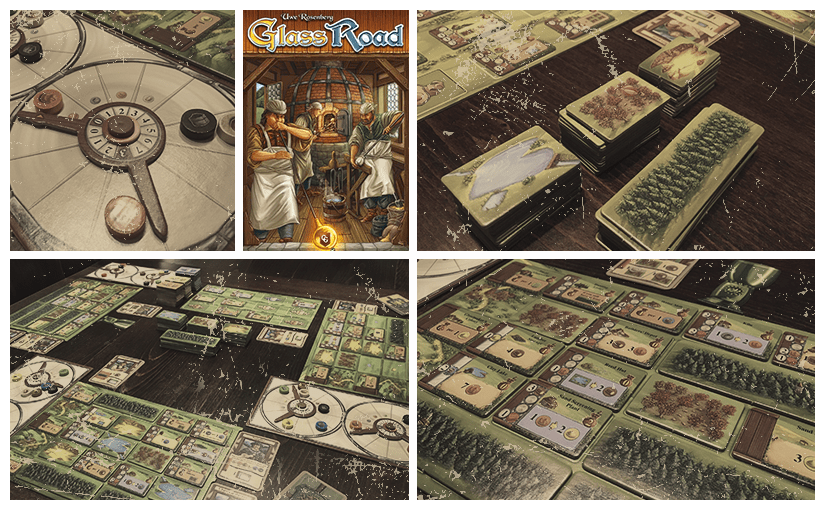 Amikor erre a sorozatra elszántam magam, úgy gondoltam, hogy csupa 2010 előtti, tehát minimum 10 éves játékot tűzök majd a tollamra. Ezzel a szándékkal nyúltam a Glass Road felé is, hogy aztán meglepődjek: ez a játék 2013-ban látta meg a napvilágot. Nos, vannak játékok, amik akár éveket letagadhatnak a korukból – mármint negatív értelemben – és a Glass Road is ilyen. Egyes nyomdai megoldások (pl. a lapkák sarokkerekítése) ugyan uralkodnak a valóságról, de összességében számomra elfért volna egy öt évvel korábbi szortimentbe is. Igaz, megtévesztő lehet az is, hogy a használtan vett saját példányom valamiért, minden szellőztetés és szárítás ellenére még mindig erős dohszagot áraszt magából, mintha évtizedeken át a pincében várt volna a sorára.