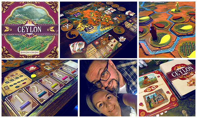 Furcsa ezt így leírni, de bizony már évtizedek óta szenvedélyes teaivó és -gyűjtő vagyok, a számos ázsiai utam valahogy mindig kapcsolódott valahogy a helyi teakülönlegességekhez. Amióta gyermekünk van, az utak ugyan megritkultak, de cserébe itthon megszaporodtak a hazai teaházak és olyan delikát boltok, ahol könnyen beszerezhetők még ritkaságok is. Akárhogy is, ez a téma régóta vonz, bármilyen területen is tűnik fel, így nincs másként a társasjátékok esetében sem. Nem volt véletlen, hogy felkaptam a fejem a Ceylon megjelenésekor. Azonban nem csak a téma volt szívemnek kedves, de a látvány is: bátran állítom, máig az egyik legszebb játék a polcunkon. Mert hát természetesen hamarosan beszereztük, valamivel az esseni megjelenése után. És azóta nem egy olyan Táblajáték Szalon rendezvényen sikerrel szerepelt, ahol más, kapcsolódó tematikájú játék is asztalra került – az elmaradhatatlan teakóstoló után. Az utóbbi időben azonban leginkább csak ketten játsszuk – de természetesen egy csésze dimbula vagy nuwara eliya szürcsölése mellett.