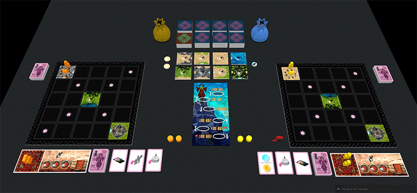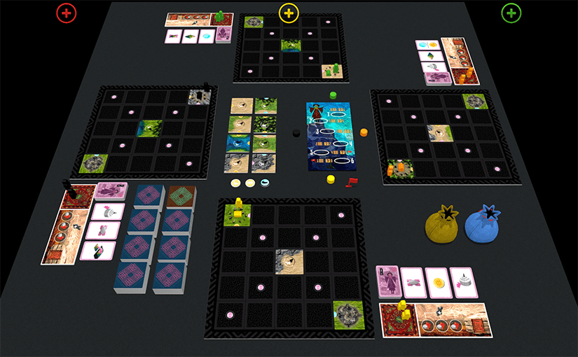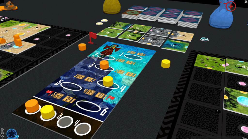 Nem voltam ügyetlen, de azért el-elkövettem egy-egy feltöltési vagy elnevezési hibát, így végül egy nap elment a teljes komponenscsomag összeállításával a Tabletopia szerverén, majd másnap és harmadnap foglalkoztam a két felállás megszerkesztésével, de ezen a harmadik napon már lejátszottuk az első partit a feleségemmel, aki akkor két szobával távolabb ült tőlem a saját számítógépe előtt.