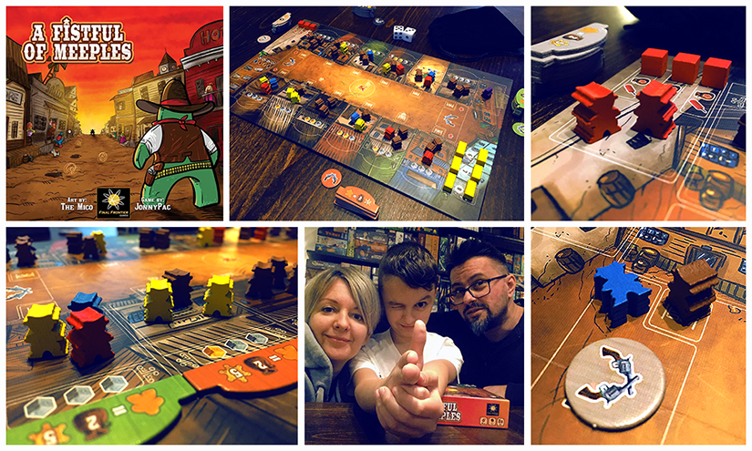 Olyan kevés nagyszerű vadnyugati témájú társasjátékkal találkoztam, hogy azonnal felcsillant a szemem, amikor két éve felfedeztem a Sierra Westet, majd nem sokkal később a Colomát. Ezek ráadásul középnehéz eurójátékok, mondhatni a kedvenc műfajom képviselői, így hamarosan be is szereztem őket. Mint kiderült, mindkettő szerzője ugyanaz a Jonny Pac nevű (nem mellesleg amerikai) fickó, akinek a 2019-es évben még egy western tematikájú játéka megjelent: A Fistful of Meeples. Nos, erre a harmadikra nem sok figyelmet fordítottam, mert hát legyen elég a fenti kettő. De bárcsak fordítva gondolkodtam volna! A két megrendelt játék nagy csalódás volt számomra – hamarosan meg is válok tőlük –, míg a kisöccsük egyértelműen az év egyik legkellemesebb meglepetése: amióta megérkezett, nem képes sokáig a polcon maradni. Egyben visszaadta az esélyt, hogy valaha még Jonny Pac játék vásárlására adjam a fejem.