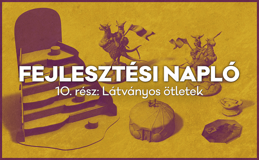 A látványterv elfogadtatásával azonban még várni akartam. Nem volt szándékomban a teljes projektet lefuttatni Zoli terhére, de megegyeztünk, hogy a főbb elemekből mutatnunk kell új variációkat, és a kép, amelyet 3D mockup formájában képzeltünk el, még nem állt sehogy. Mégis, a továbblépéshez fel kellett hívnom Gyöngyösi Gábort. Muszáj volt feltennem egy kérdést, mert amíg nem kapok elvi engedélyt, nem érdemes tovább gondolkodnom a részletekben. Ugyanis műanyag játékosfigurák kezdték piszkálni a fantáziámat. Igen, afféle „minik”, de játékosszínekben. És nem is egyféle, hanem egyenesen három: a címlap lovasa, mint vadászfigura a leglényegesebb, de mellé hasonló módon megjeleníteném a tábort, mint egy jurtát, és végül a sámánlépcsőre sem egyszerű fakorongokat raknék, hanem pici áldozati kosarakat.