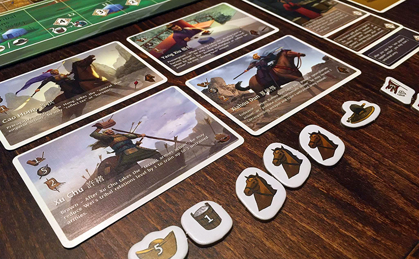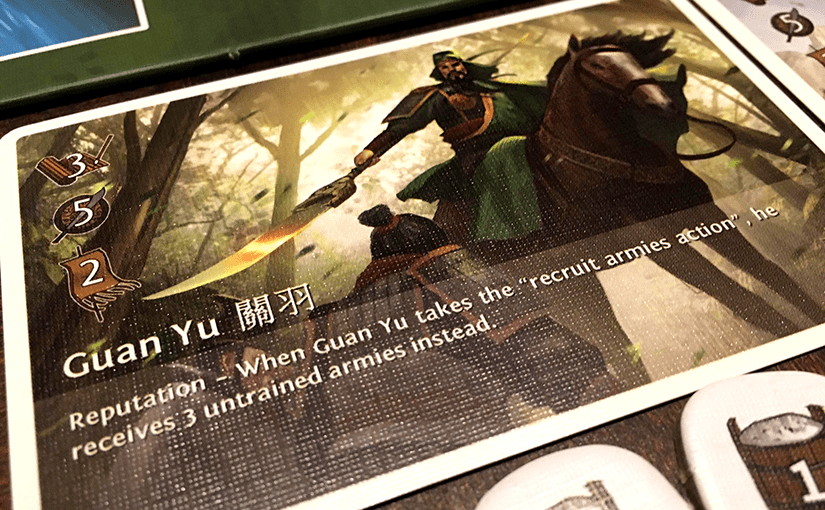 Mindezt azért, hogy erősítsék a tematikát. Wei ura egyértelmű dominanciával bír a játék elején, ahogy ez a történelemben is szerepelt. Cao Cao hadvezéren túl 4 generálisa van, Wunak összesen 4, Shu pedig mindössze 3-mal kezd. Ezt a jelentős előnyt némileg kompenzálja, hogy aranyból, rizsből és bónuszkártyákból valamivel gazdagabb a kezdő készlet Wu és Shu esetén, de a legfontosabb ellenmozgás nem itt történik. Egyrészt a játék három, megjelölt fordulójában újabb generálisok érkeznek a csapatba. Nos, amíg Wei mindhárom esetben 1-1 kártyalappal bővíti a felhozatalt, a többiek viszont 2-1-1 illetve 2-2-1 felosztásban a játék végére szintén elérik a 8 lapos felállást. De az a kezdeti előny akkor is sok, hiszen aki a játék elején foglal el határterületeket, a seregei állomásoztatása után folyamatosan pontot szerez a játék végéig (ráadásul az elfoglalt területekről nem túrható ki senki). Ezért a szerzők beépítették a szövetség funkcióját, ami mindig a másodikként és harmadikként sorra kerülő (azaz a két kevesebb akciót végző) játékos között jön létre automatikusan. A szövetségesek kijelölhetnek egy akcióterületet, amelyre mindketten pályáznak, és az odahelyezett tábornokaik értéke összeadódik (az aktuálisan domináns szereplőnek nem lehetetlen, de nehezebb küzdeni ott az elsőségért), valamint mindketten elvégezhetik az akciót, ha részt vesznek a foglalásban.