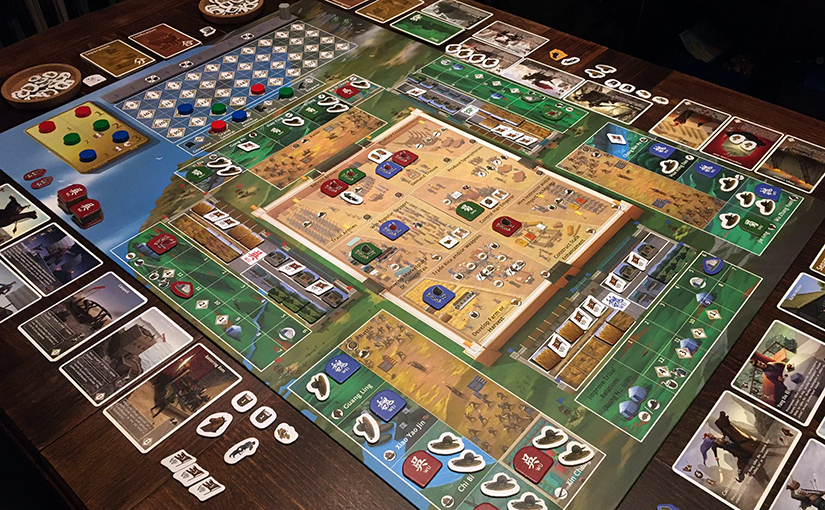 A szingapúri házaspár (Yeo Keng Leong és Christina Ng Zhen Wei) műve nem is az első a sorban, sőt, nem is az utolsó – a BGG adatai szerint. Azonban a Three Kingdoms Redux mind közül a legmagasabbra értékelt és legnépszerűbb (a zömmel amerikai látogatók között). Talán a viszonylagos siker részben annak is köszönhető, hogy a szerzők a harcias téma ellenére lényegében egy tiszta eurójátékot építettek a Három Királyság története köré, abból is egy kifejezetten összetettnek, nehéznek számító darabot. A kínai kultúra rajongójaként számomra ez a néhány paraméter elegendő volt ahhoz, hogy a játékot a kívánságlistámra tegyem, amikor pedig a részleteket megismerve kiderült, hogy egy ritka tüneményről, egy kifejezetten tematikus eurójátékról van szó, egyenesen beleszerelmesedtem a projektbe. Ehhez képest a játék több hónapot várt arra, hogy először kipróbálhassuk, hiszen a feleségem mellé még muszáj volt találni egy harmadik vállalkozó szellemű játékost, akit nem tántorít el a téma és rengeteg kínai név – a Three Kingdoms Redux ugyanis csak három személlyel játszható játék. Végül a szabályok „megfejtése” (és a pandémiás állapotok enyhülése) után két ízben került asztalra a játék, ezek tapasztalata után ragadtam tollat, hogy elmondjam, megszolgálta-e a lelkesedést.