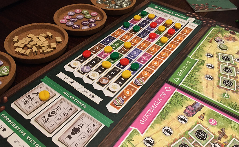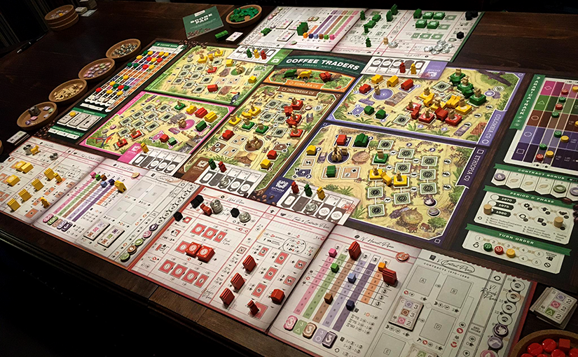 Sok módja van annak, ahogy egy játék felkeltheti az érdeklődésemet. Gyakori, hogy egy már bizonyított szerző új darabjáról van szó, vagy éppen egy bizonyos sorozat új epizódjaként tálalják az új kiadványt. Nem ritka az sem, hogy a téma vonzza a figyelmemet, vagy éppen az asztalkép, netán egy ajánlás mutat rá, hogy majdnem elsiklottam valami érdekes felett. A Coffee Traders kivételes esetként egyszerre több fronton támadott, és villámháborúval nyert meg magának. Már arra sem emlékszem, hogy mi volt az első impulzus, csak hogy a kívánságlistám első helyére került – és mivel hál’istennek nem Kickstarter játékként látta meg a napvilágot, nem is kellett sokat várnom rá. Úgy adódott, hogy születésnapi ajándékként a feleségem lepett meg vele. Na jó: nem voltam meglepődve… Így aztán az ünnep megkoronázása volt a Coffee Traders kipróbálása is. Mondhatni, egyébként is főfogásként kívánkozik az asztalra.