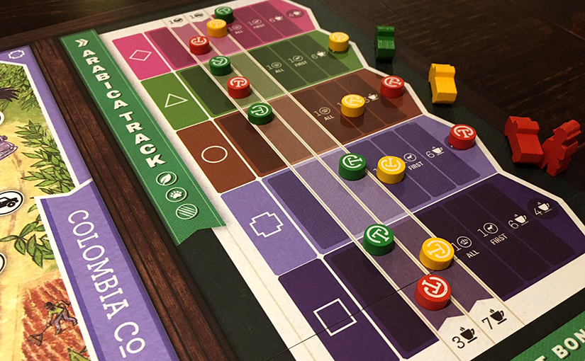 A játékban van még egy kissé matricaként ráragasztott, de kétségtelenül jól integrált belső mechanizmus. Ez az ún. Arabica Track, amely azt hivatott forszírozni, hogy igyekezzünk mind az öt területen belefolyni a kávékereskedelembe. Az ültetvények színének megfelelő sávokon érdemes előre haladni a pontokért, és egyes bónuszokért is, amelyekhez általában úgy jutunk hozzá, ha mind az öt jelölőnk elhagyott egy bizonyos határpontot. A látszólagos mellékszál hamar fontos versennyé válik a játékban, ezt szinte lehetetlen mellőzni, ha valaki nyerni akar.