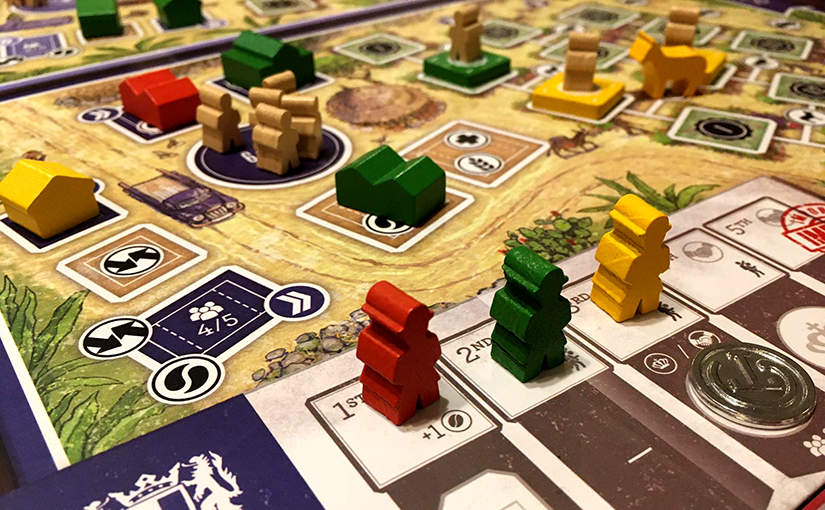 Azért mondom, hogy „másik területfoglalós versenyben”, mert a kávétermelő területeken már az első pillanattól zajlik az egyik. Ebben a lehelyezett épületekkel (mindegyik 1 pontot ér) és ültetvénylapkákkal veszünk részt – és az utóbbiak esetében itt lesz jelentősége majd a lapka minőségi értékének. Egy 3-as értékű lapka ugyanis 3 pontot, azaz 3 épületnek megfelelő pontot ér. Azonban a nagyobb lapkák lehelyezése természetesen nehezebb feladat: nem csak azért, mert van egy meghatározott hozzáférési sorrend a személyes táblán, hanem mert kell hozzá csacsi vagy kocsi. A csacsi egy fura valuta a Coffee Tradersben. Tematikai szempontból az egymástól távolabb lévő parcellák összekötésére szolgál, de nehezen megszerezhető mivolta miatt a túl gyors területfoglalásokat, illetve az értékes ültetvénylapkák lehelyezését korlátozza. A teherautó pedig maga a kincs. Mondjuk úgy, hogy „extra csacsiértékkel bír”, de cserébe a megszerzése is extra erőfeszítéseket kér.