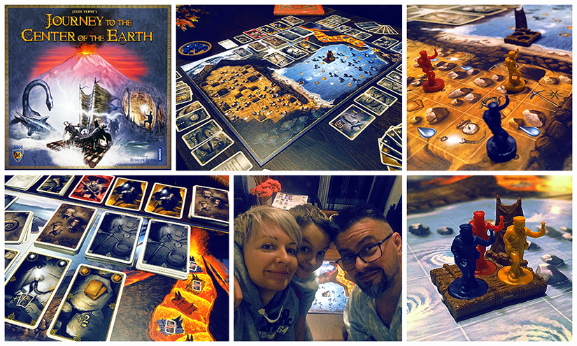 Talán az ún. eurójátékok nem alkalmasak arra, hogy történetet meséljünk általuk, de kétségtelenül remekül alkalmazhatók ismert történetek “megidézésére”. Amikor nem a játéknak kell mesélnie, hiszen mesél a fantáziánk, mesélnek az emlékeink a könyv vagy a film nyomán. Ilyenkor nem az események alakulását élvezzük elsősorban, hanem azt, hogy az ismert környezetben, szereplőkkel és eszközökkel mi is érintkezésbe kerülünk. Az irodalmi feldolgozásokkal a német Kosmos kiadó jár az élen, és amit az elmúlt két évtized során tettek ez ügyben, igazán megsüvegelendő. 2000 óta több mint egy tucat olyan társasjátékot jelentettek meg, amelynek az alapja egy-egy sikeres regény. Így kapott játékos adaptációt Ken Follett katedrálisos sorozata, vagy olyan neves ifjúsági regények, mint a Tintaszív vagy az Arany iránytű. Nem annyira meglepő, hogy ebbe a sorozatba két Jules Verne téma is belekerült; a fantasztikus útleírások nagymesterétől Michael Rieneck dolgozta fel a „80 nap alatt a föld körül” történetet, Rüdiger Dorn pedig elvállalta „Az utazás a Föld középpontja felé” c. másik sláger feldolgozását. Mindkettő megjelent magyarul is, és mivel Matyi aktuális olvasmánya indokolta, a napokban előkerült néhányszor az utóbbi. Elmesélem, hogy milyen