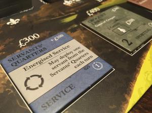 Mindenesetre melléjük is rendelni kell szolgákat a kártya rendelkezései szerint, akik az esemény végén nem a helyükre térnek vissza, hanem két mezővel arrébb, hogy két körrel később kipihenten érkezzenek a szolgálatba. Addig is lehetőségünk van további szolgák felvételére, sőt, akár kölcsönvehetünk megfelelő kiszolgáló személyzetet játékostársainktól is (azok legnagyobb örömére).