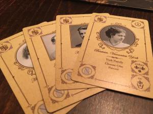 Illetve van még valami: bizonyos számozott forduló némi újdonságot csempész a teendőink monotonitásába. Egyes mezők elérésekor (és bizonyos előkészület mellett) a falusi vásár pénzt és presztízst jelent egyeseknek, máskor újabb célkártyákhoz jutunk a kezdeti 5 mellé/helyett, de egy-egy ilyen mező korlátozhatja valamely tevékenységünket, illetve értékelheti időközben a Nagy Versenyt, amelynek a lényege, hogy ki kerül közelebb a befolyásos Fairchild családhoz. A játékban ugyanis négy ízben felcsapunk egy mini kártyát, ami megmondja, a következő találkozáskor melyik lapkaszínből kell a többiekhez képest erősebbnek lenni ahhoz, hogy valamelyik Fairchild sarj kártyája hozzánk kerüljön, élvezve a főrend áldásos segítségét.