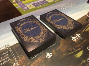 De hát egy eurogame-nél keseregni a látvány felett nem túlzott kukacoskodás? Nem. Egyrészt azért, mert ez a téma magas labda, amit nem lehet leütni vegyes vonalvezetésű stock grafikákkal. Másrészt napjainkban az euróknál is magasan van az igényszint, hiszen a piaci dömping hatására a verseny egyre kiélezettebb. Harmadrészt pedig kijelenthető, hogy az Obsession ha nem is hibrid, de céljait és felfogását tekintve nem egy hagyományos értelemben vett eurogame. Természetesen az, mechanikai értelemben, de egyértelműen az amerikai ízlés szerint készült. Márpedig odaát nem csak a magas szerencsefaktorhoz és a storyline-okhoz vonzódnak már-már zavarba ejtő módon, hanem a felcsavart látványvilághoz is, amit nem ad meg nekik ez a játék.
