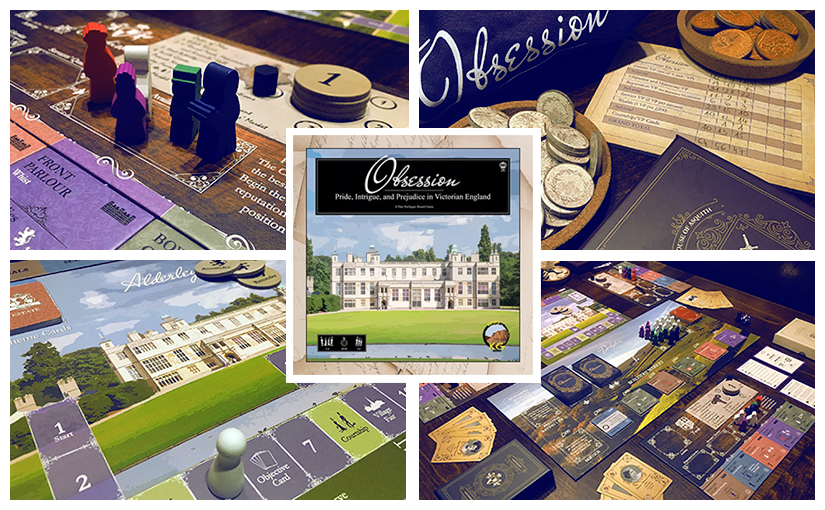 Amikor évekkel korábban (és jóval a Kickstarter kampány előtt) kiszúrtam magamnak ezt a játékot, akkor az elsősorban ennek a tematikával jócskán átitatott játékötletnek volt köszönhető. Már akkor, az első kiadás bemutatta, hogy a szerző, az egyébként az Egyesült Államokban élő Dan Hallagan rajongásig imádja ezt a 19. századi angol nemesi világot, és minden bizonnyal Jane Austen Büszkeség és balítélet c. regényét is. Akkoriban a talán épp OOP (out of print) státuszú játék emellett egy valódi megszállott szerelemgyerekének tűnt (v.ö.: Obsession=megszállottság), egy hobbista szerző deklaráltan egyetlen és fő művének, amelynek minden részletét ő maga faragta olyanra, amilyenre csak a képességei engedték.