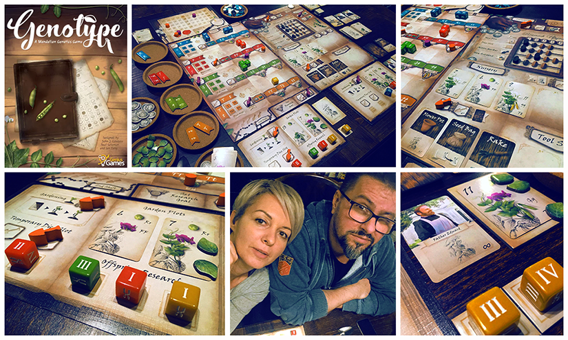 Ha valaki tizenöt-húsz évvel ezelőtt azt mondja, hogy egyszer játszom majd egy olyan társasjátékkal, amelynek a tudományos örökléstan az ihletője, biztos kinevetem. Manapság már ez kevésbé hat furcsán, de tény, hogy a genetika, sőt, általában a tudomány nem épp a legnépszerűbb tematika ebben a műfajban. Nem véletlenül: az ember a játékokban általában eszképista, igyekszik kiszakadni a hétköznapokból, és a tudomány csak nagyon keveseknek szórakozás, inkább munka vagy tanulmány. És akkor jön a Genus Games kiadó, akiknek nem csak sikerült játékosítani (v.ö.: gamification) egyes tudományágakat (több hasonló típusú kiadványuk is megjelent már), de a játékaikat egyenesen az átlagember számára is fogyaszthatóvá tették. Matyi fiam alapvetően nem idegenkedik az extra játéktémáktól, de amikor először mutattam neki a Genotype-ot, kissé felhúzta a szemöldökét. Úgy sejtette, ama rafinált ötleteim egyikével találkozik, amiket pusztán az okítására vezetek elő. Nem erőltettem. Az első partit kettesben játszottuk Vikivel, de már közben láttuk a gyermek érdeklődő tekintetében, hogy legközelebb bővül majd a játékosszám.