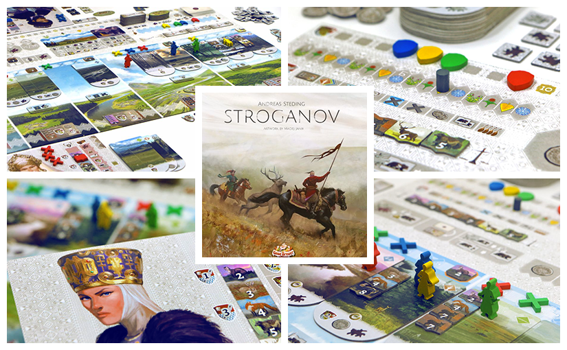 A Stroganov látszólag rengeteget kínál lehetőségekből: némi lóáldozatért szinte bármennyit haladhatunk a táblán, a 9-12 akció elegendőnek tűnik egy évre, mindenhol valami bónuszlehetőség kínálkozik, kihívóan mutatja magát. Igen ám, de az egész rendszer alapját az állatlapkák adják. Az állatlapkák, amelyekhez két módon lehet jutni: vadászat akcióval egy konkrét tájlapkán, ahol valamilyen leosztás található éppen, valamint a „piacon”, ahol szintén valamilyen leosztás alapján figyel 6 ilyen az év végéig (aztán lecseréljük mindet a zsákból húzott újakra). Ez a mechanika természetesen arra készteti az egyszeri játékost, hogy igyekezzen átlátni a táblát, majd a lehetőségeket felmérve próbáljon tervezni, hiszen ami nincs a szeme előtt, az jószerivel nem is lesz elérhető az adott évben, azaz a játék egynegyede alatt. Ez tehát egy puzzle, amit meg kell fejteni. Tiszta sor. Csak hát a többiek is ugyanezen ügyködnek. És ez, így ebben a felállásban már egy gyilkos kombó.