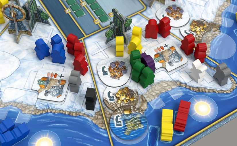 A rendszer nem bonyolult, de bevallom, a játék méretéből és kiállításából elsőre tévesen ítéltem meg a kihívást, amit a játékosok felé támaszt. Az Antarctica egy meglehetősen „agyas” játék, amelyben az fog nyerni, aki okosabban tervez és ügyesebben reagál a felálló helyzetekre. A sokat emlegetett napkorong, ami esetünkben egy sárga félgömb, minden egyes kör elején egy szekciónyit elmozdul az óra járásával ellentétes irányban, így mindig felmelegít egy kikötőt, ahol jobbára kutatóhajók állomásoznak. (A kikötőkben legfeljebb 3 hajó állhat, és a Napocska legfeljebb jobb szélső hajóhoz kegyes, a sorban második kiszabadításához már különleges képesség, egy jégtörő felhasználása szükségeltetik.) A játékos, akihez a színe alapján tartozik a hajó, kötelezően elmozgatja azt, és menten áthajózik egy másik kikötőbe, bárhol a központi sziget (pardon: földrész) körül – csak visszatérnie nem szabad a kiindulási pontjára.