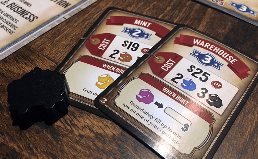 Könnyű ugyanis hoppon maradni. Egy-egy bányapozíció, munkásmező, szerződés elhappolása csúnyán felboríthatja a csupán magunkban felállított elképzeléseket. A véletlenszerűség jelen van a játékban (mint hasonlóan tervgyilkos opció), de érzésem szerint mind a szerződéskártyák, mind az épületkártyák esetén kellőképp megzabolázott formában – mindkét területen több kártya közül választunk –, a bányakártyáknál pedig nem zavaró a kilengés, amit az egyes lapok okoznak, ráadásul egyszerre minden játékost érintenek.