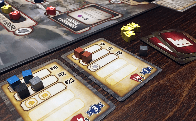 Ehhez azonban nem egyszerűen össze kell gyűjtenünk a szükséges nyersanyagmennyiséget, amit a szerződés kér, hanem minden biznisz fázisban kötelezően teljesítenünk kell a kártya soron következő igényét. Ha ez nem sikerül, elveszítjük a kártyalapot, és vele az építési és pontszerzési lehetőséget. Bármennyi szerződéskártyát tarthatunk magunk előtt, de a fenti rendelkezés minden egyes kártyára vonatkozik. Meglehetősen originális, és elsőre talán szokatlan megoldás, de remek fogás arra nézve, hogy a játékost folyamatosan a közeljövőhöz láncolja, és ne engedje szabadjára a „farmolást”, azaz a nyersanyagok előre felhalmozását.