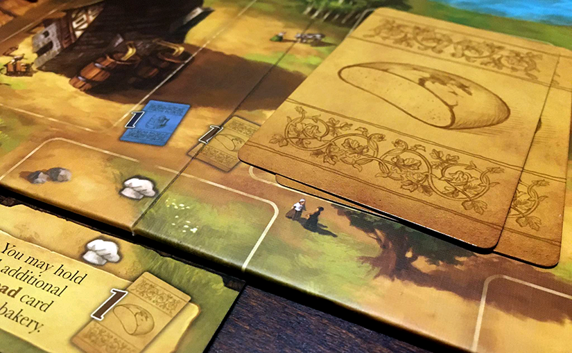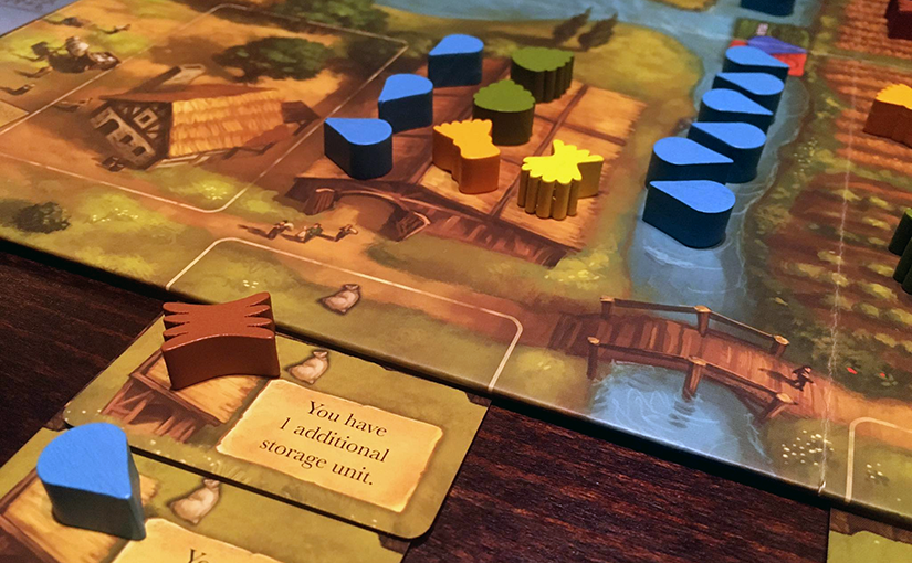 Miután leültünk a tábla két oldalára (a Beer&Bread szigorúan csak így játszható, a tábla két külön oldala más-más perspektívából használható, sőt értelmezhető), látjuk a falut, a pékség és a serfőző épületét, valamint a csűrt, amelynek a tetejére legfeljebb 9 egységnyi áru fér. Ez utóbbi lesz az a raktárkapacitás, amelyet megtölthetünk a betakarított búzával, árpával, rozzsal, komlóval, vagy a folyóból származó vízzel. A közös forrást valóban közösen használjuk, azaz nem csak egymás elől vesszük el a termést, de a fölösleget is fel kell ajánljuk a másik számára.