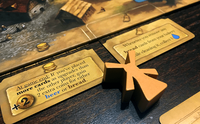 Ezt a háromszor megismétlődő ciklust éljük át a játék végéig, azaz 30 akciót végzünk, hiszen ennyi kártyalapot játszunk ki mindketten. Hol így, hol úgy. A pénz az elkészített termékek (beer & bread ugye) kártyáiból jön össze elsősorban, de bizonyos képességként felhasznált (a tábla alá dugdosott) lapok szintén hozhatnak pontot. Meg kell számoljuk, mely üzletág, a sörfőzés vagy a kenyérsütés hozta a kisebb bevételt,